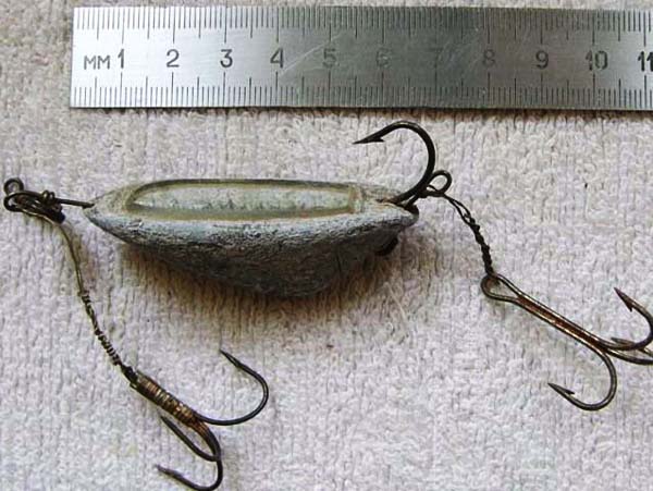Пулька-зеркальце представляет собою свинцовый груз, имеющий форму небольшого куриного яйца, разрезанного по длине.