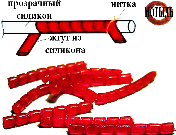 Мотыль-имитатор можно изготовить самостоятельно из изоляции радиотехнического тонкого провода алого цвета, диаметр которого от 1,3 до 1,5 мм. Его можно легко насадить на обычный крючок, небольшую блесенку и на крючок мормышки.