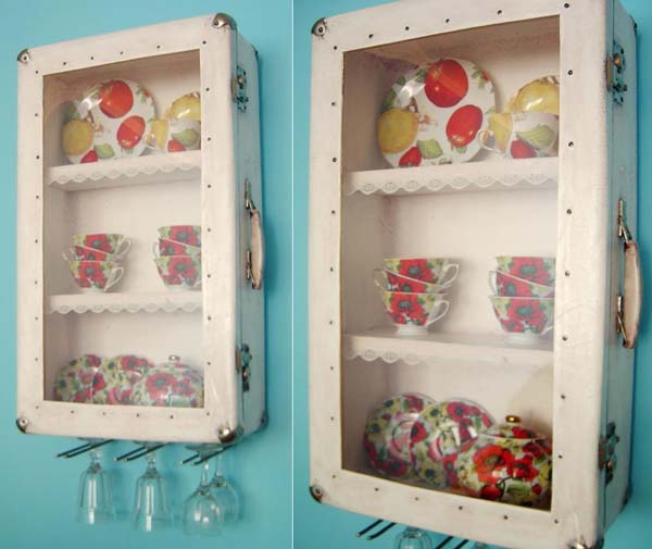 Захотелось создать что-то необычное из обычной вещи и получился у меня шкаф-витрина для посуды с подвесом для бокалов из обычного старого чемодана.